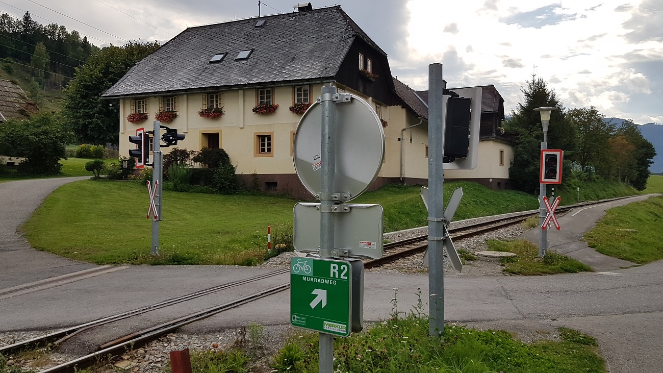 Mein Start ist heute um 9:15 Uhr. Es geht fast den ganzen Tag an der Mur entlang. Vom Bundesland Steiermark komme ich ins Bundesland Salzburg. Ganztägig geht es auf und ab, letztlich hinauf. Nach 50 km komme ich nach Knittelsfeld. Dort führt mich mein Garmin Gerät zunächst auf falschen Kurs, nämlich links ab über Gobernitz in die Rathauer Straße und zurück nach Knittelsfeld. Damit fahre ich 10 km und 200 Höhenmeter zuviel.